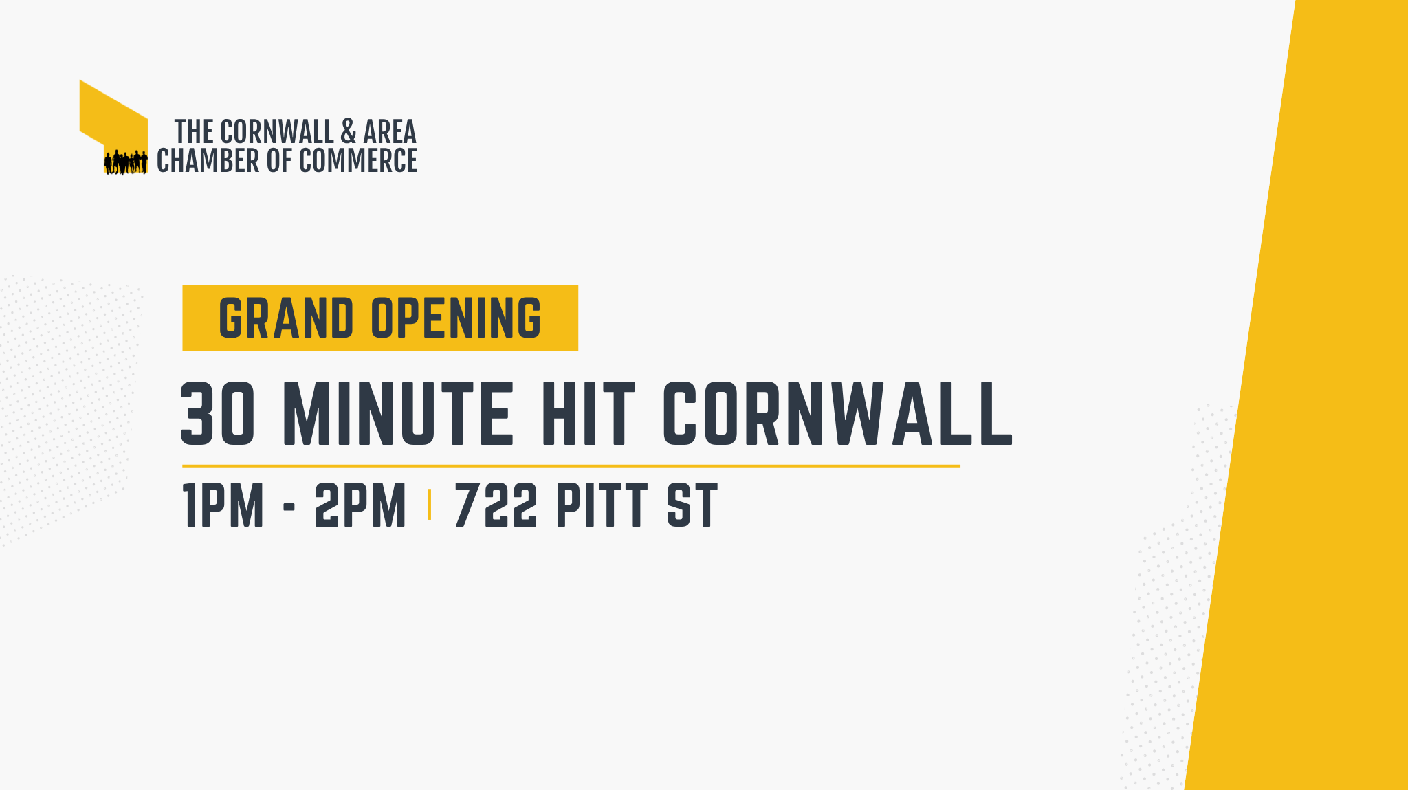 Join owners Eileen Wilson and Alex Kwan for the official Grand Opening of 30 Minute HIT Cornwall. Whether you are a fitness enthusiast or looking for a supportive place to start your journey, come discover a community built on empowerment, strength, and confidence.